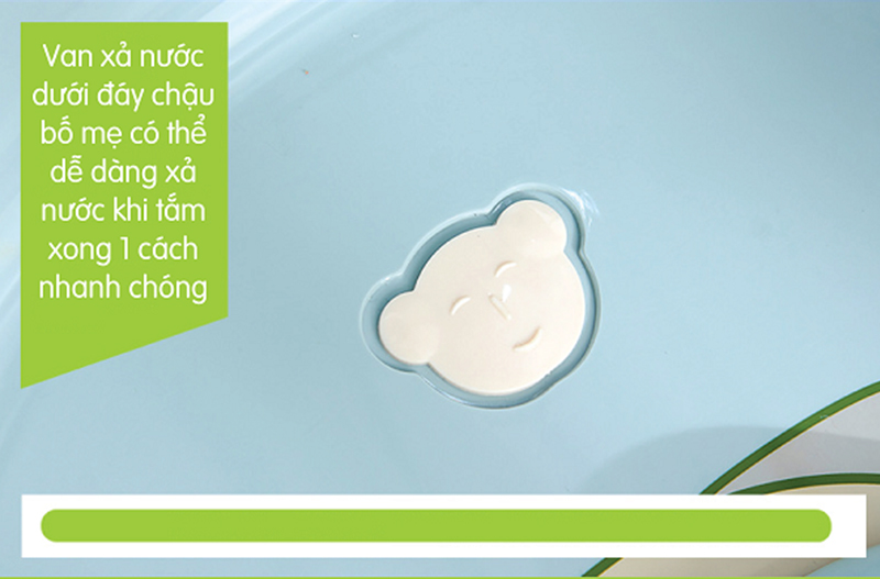 Giá đựng đồ tiện lợi - Van thoát nước tiện lợi. Chậu có thiết kế van thoát nước ở dưới đáy chậu do đó sau khi bé tắm xong mẹ chỉ cần tháo van ra là có thể cho toàn bộ nước tắm của bé ra ngoài mà không phải thao tác bê vác