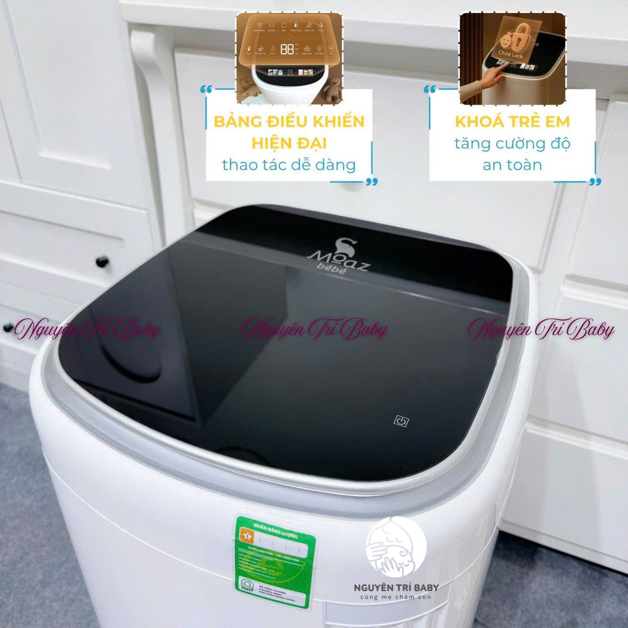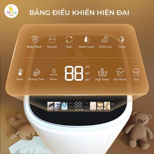 - Máy giặt kèm sấy khô thế hệ mới Moaz BéBé MB – 119 báo lỗi tự động, tự động tắt nguồn.