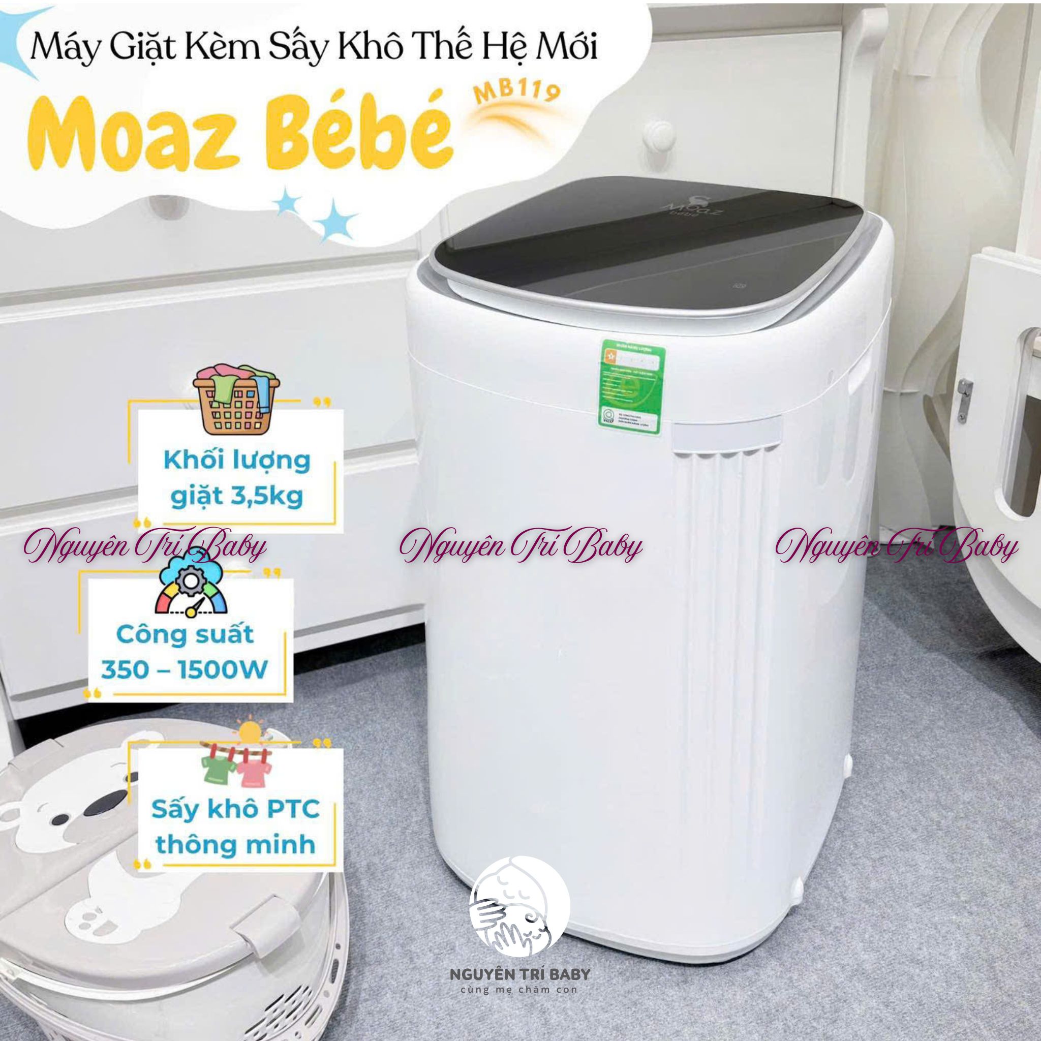 Thông số kỹ thuật máy giặt mini kèm sấy khô Moaz bebe MB119