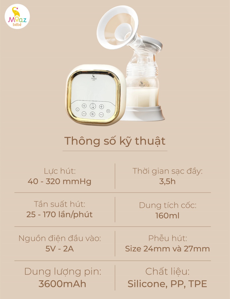 Thông số kỹ thuật máy hút sữa điện đôi Moaz bebe MB090