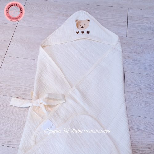 Chăn choàng ủ xô thêu gấu đa năng kiêm chăn ủ cho bé